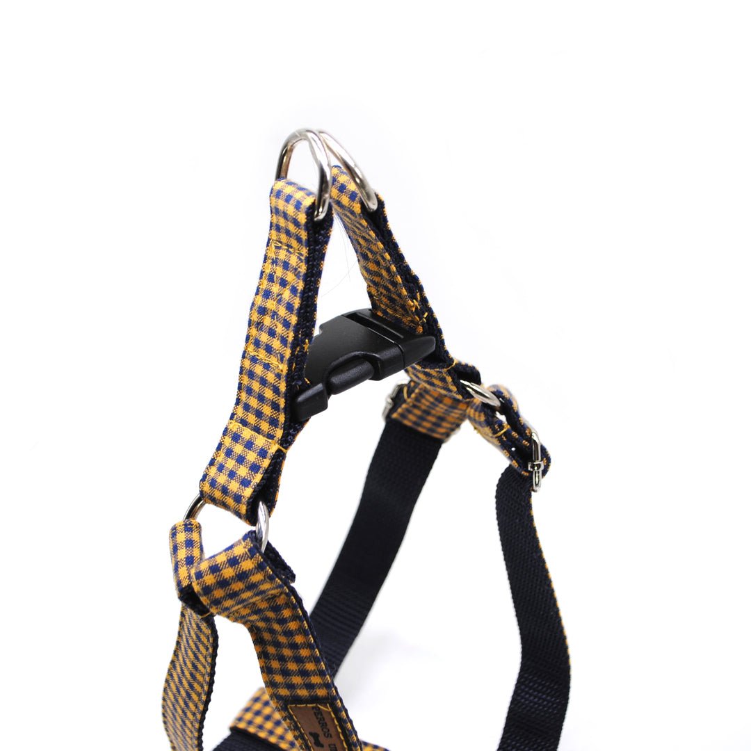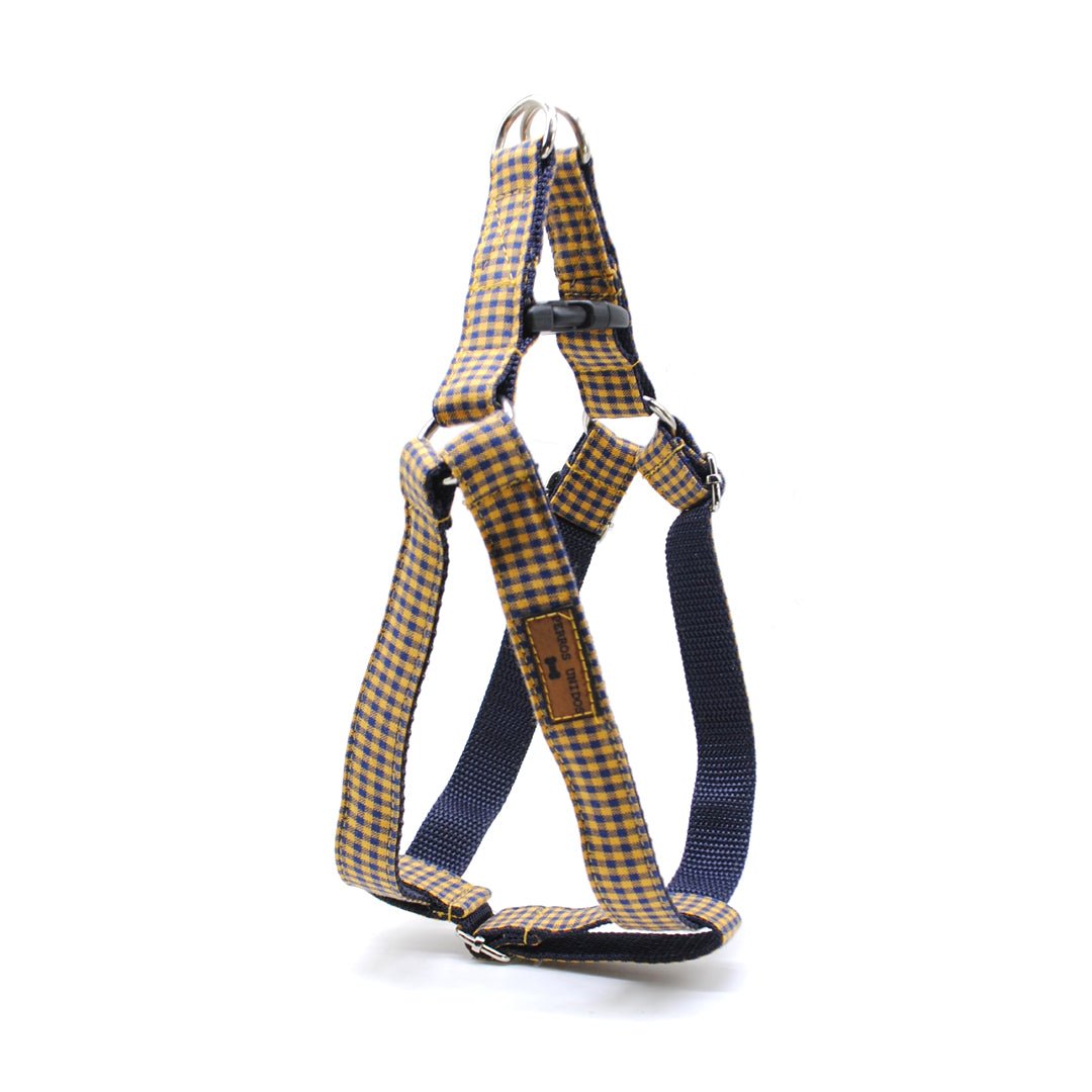 Arnés perro cuadrillé azul & mostaza - Perros Unidos