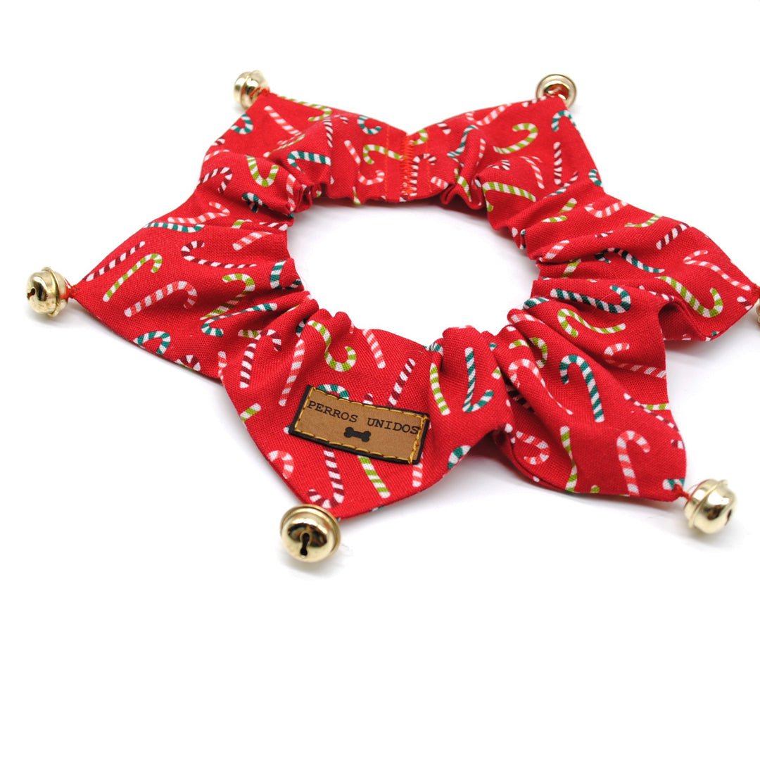 Collar navideño decorativo adaptable, muy cómodo para la mascota ya que tiene elástico interior. Tiene cascabeles incorporados.
