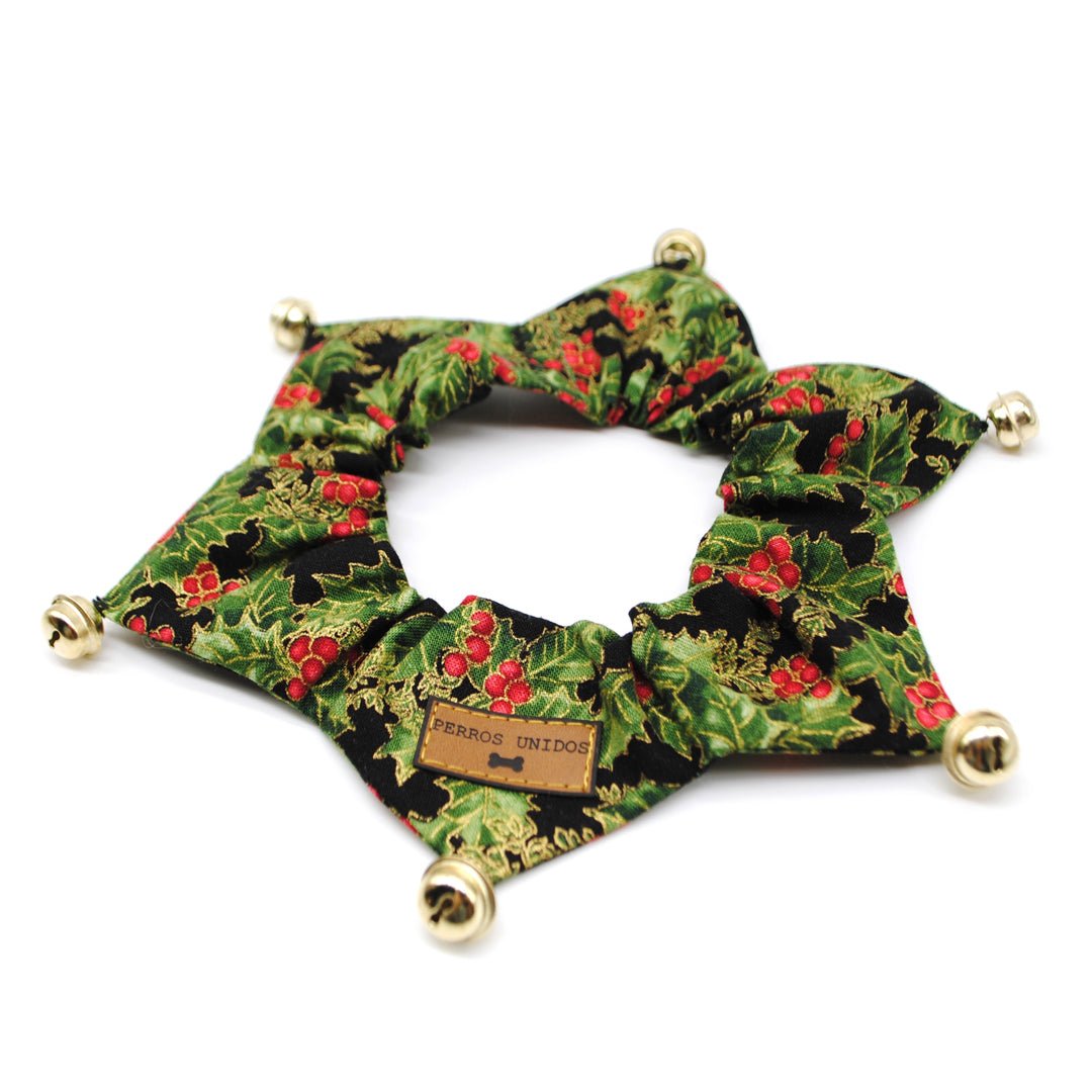 Collar navideño decorativo adaptable, muy cómodo para la mascota ya que tiene elástico interior. Tiene cascabeles incorporados.