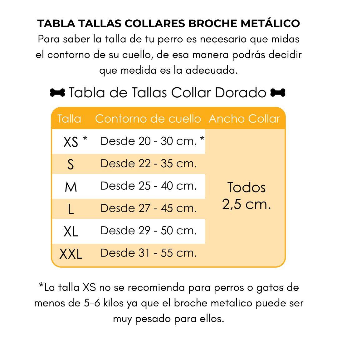 • Los collares con broche tienen un peso aproximado de 80 gramos por lo que puede que sean muy pesados para perro de razas pequeñas o de menos de 6 kilos. Tenlo en cuanta antes de hacer tu compra.